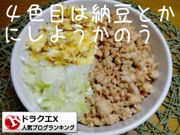 いつも「今日こそは4色丼にしよう!」と思うのに気づいたら3色丼になっています。